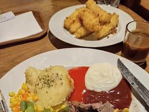 Salah satu menu yang sangat direkomendasikan adalah Sirloin Steak dengan Mushroom Sauce dan Mashed Potatoes. Kombinasi rasa yang kaya dan tekstur yang lembut membuat hidangan ini menjadi favorit banyak pengunjung. Selain itu, jus buah segar yang disajikan, seperti jus mangga, juga menjadi pelengkap yang sempurna untuk hidangan utama.