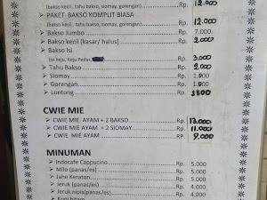| Menu Favorit: Cwie Mie Ayam (Mie Pangsit, Kemasan Standart Menggunakan Kertas Bungkus Coklat), Paket Bakso Jumbo Komplit (lebih Hemat), Paket 1 Tusuk Bakso Bakar | |