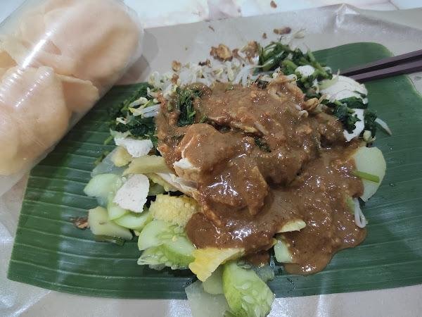 | Gado-gado + Lontong | untuk Porsinya cukup Puas Bener-Bener Banyak Banget Soalnya rasa Cukup enak dan desain nya Suka Banget Cuman Kemasannya perlu diperhatikan lagi alat makannya Juga Maaf Bangat kalau bisa dikasih Plastik lagi. |