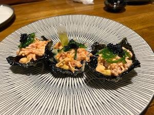 Ketika mencicipi Salmon Mentai Nigiri, Anda akan disuguhkan dengan potongan salmon segar yang dipadukan dengan saus mentai yang creamy dan lezat. Setiap gigitan memberikan sensasi rasa yang memanjakan lidah. Salmon Sashimi-nya pun tidak kalah menggoda, dengan tekstur yang lembut dan rasa yang segar, seolah baru saja diambil dari laut. Namun, tidak hanya itu, menu salad yang disajikan juga patut dicoba, dengan bahan-bahan segar dan dressing yang menggugah selera.