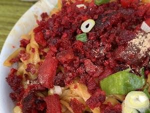 Oh, dan jangan lupakan si merah manis yang bikin saya berpikir, “Apakah ini dessert atau mie?” Rasanya sih manis, tapi tidak ada yang spesial. Mungkin dia hanya ingin tampil beda di antara teman-temannya.