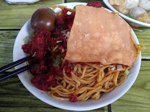 Rasa mie-nya? Hmm, bisa dibilang cukup oke, tapi tidak ada yang bikin saya terbang ke bulan. Teksturnya sedikit lembek, mungkin karena mereka terlalu sayang sama mie-nya. Tapi kuahnya? Oh, kuahnya enak banget! Seperti pelukan hangat di hari yang dingin. Ditambah lagi, ada bakso, pangsit, dan kulit babi goreng yang bikin saya merasa seperti raja di atas takhta mie.
