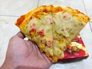 Gue juga denger dari pelanggan lain yang bilang, Kemarin sore beli dan pagi ini buat sarapan, masih enak banget! Jadi, pizza ini emang tahan lama dan tetap enak walaupun udah dingin. Ada juga yang bilang topping rendang dan kari jadi andalan, dan ternyata nggak pedas, jadi anak-anak juga bisa makan.
