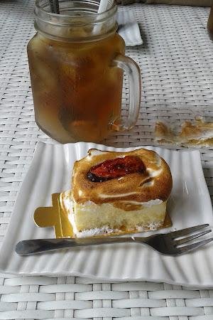 Gue juga sempet baca review dari pengunjung lain, dan banyak yang bilang kalau harga di sini terjangkau banget untuk rasa yang ditawarkan. Ada yang nyobain strawberry cheesecake yang cantik dengan krim karamel, dan cake cokelat yang tebal. Mereka juga punya macaron dengan berbagai rasa yang bikin penasaran. Dan jangan lupa, minumannya juga enak! Ada yang nyobain Marocino coffee yang dicampur cokelat parut, dan granita coffee yang katanya mantap.