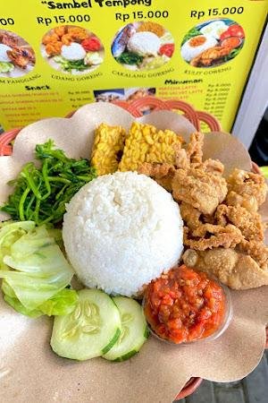 | Nasi Udang Goreng Sambel Tempong, Nasi Ayam Panggang Sambel Tempong, Kulit Sambel Tempong, Gyoza Kukus Isi 10 Kuah Pedas, Gyoza Goreng Isi 10, Oseng Paru Pedas | nggak pelit sayur. sambalnya seger. lengkap sesuai pesanan |