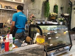 Desain interior cafe ini sangat menarik dan fotogenik, menjadikannya tempat yang sempurna untuk berfoto. Dengan area duduk indoor dan outdoor, pengunjung dapat memilih suasana yang mereka inginkan. Pelayanan yang baik dan ramah dari staf juga menambah nilai positif bagi pengalaman bersantap di sini.
