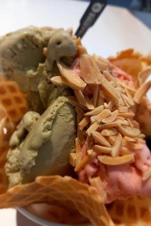 Gue juga nyobain Midnight Delight, yang rasanya manis dan bikin nagih. Beberapa pengunjung lain juga bilang kalau mereka suka banget sama kombinasi rasa yang ada di sini. Misalnya, ada yang nyobain Greentea matcha mix dengan Strawberry Flavor dan topping almond, plus wafel yang crispy. Harganya sekitar 120K, tapi worth it banget!