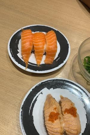 | Fried Tofu With Tempura Sauce, Fresh Salmon | salmon sushi of Genki Sushi I like! |