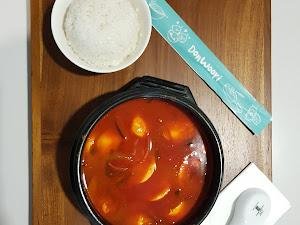 Gue juga sempet baca review dari pengunjung lain, dan banyak yang bilang kalau ini salah satu tempat makan Korean food yang recommended. Mereka punya banyak pilihan menu, dari suki sampai makanan ringan kayak Topokki. Memang sih, harganya agak mahal, jadi lebih baik kalau pergi bareng teman-teman dan sharing menu. Interiornya modern dan simple, bikin tempat ini jadi instagramable banget!