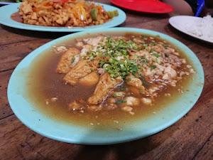Menu andalan mereka, Yong Tahu Isi + Bakso Ikan, disajikan dengan nasi putih dan Ayam Jahe yang wangi bumbu araknya juara! ?? Setiap suapan bikin kamu pengen nambah terus! Dan jangan khawatir, harganya bersahabat, mulai dari Rp50,000-75,000 per orang.