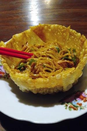 | Miago (Mie Ayam Goreng), Miago Bayam | Makanannya enak sekali. Tapi mereka kirim sumpit meskipun saya tidak minta. |
