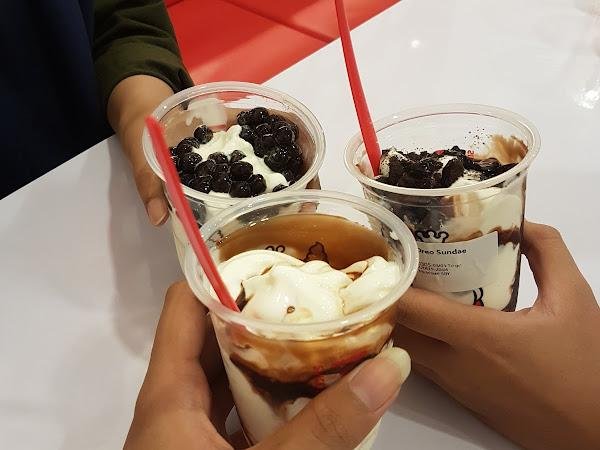 Menu andalan seperti Oreo Sundae, Chocolate Lucky Sundae, dan Mango Sundae menjadi daya tarik utama. Setiap suapan dari sundae ini memberikan kombinasi rasa yang memuaskan, dengan Oreo yang renyah, cokelat yang kaya, dan mangga yang segar. Pengunjung lain juga mengakui bahwa semua menu yang ditawarkan sangat lezat, bahkan es krim original pun menjadi favorit banyak orang.