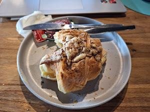 Menu andalan mereka ada Strawberry Cromboloni, Ice Caramel Macchiato, dan Triple Choco Cake. Gue sempet nyobain Ice Caramel Macchiato-nya, dan wow, itu kopi enak banget! Rasanya pas, nggak terlalu manis, dan bikin loe pengen nambah lagi. Tapi, untuk makanan, gue agak kecewa. Gue pesen croissant sosis, dan sayangnya, croissant-nya dingin di dalam. Mungkin karena pilihan menunya yang terbatas, jadi gue berharap lebih.