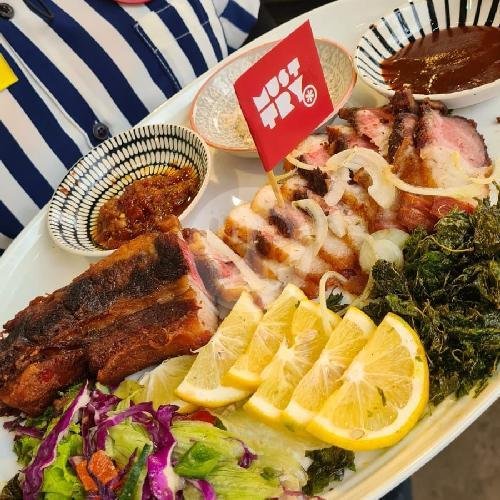 | Menu Favorit: Nasi Sapi Asap, Crispy Cow Belly 250gr, Indomie Goreng Daging Asap | |