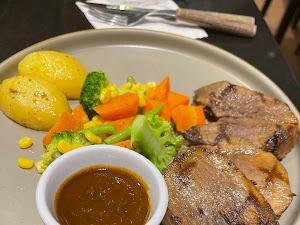 | Chicken Steak | Saus chicken steak nya hr ini beda dgn biasanya. Lebih enak yang biasa dan hr ini ayam nya agak sdkt overcooked. terima kasih |