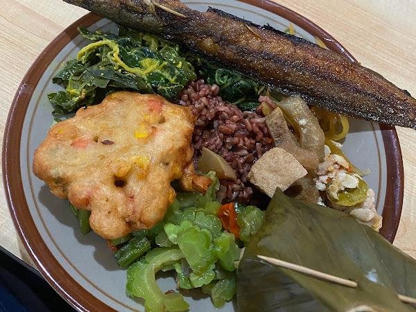 | Nasi Putih, Sambal Terasi Tomat, Telur Dadar Pedas, Oseng Soun Tempe, Oseng Kangkung, Rempelo Ati Goreng, Kepala Ayam Goreng | Pesen 2 sambal terasi , tapi ga ada dicek.besok lebih teliti lagi klo makanan mau dibungkus. |