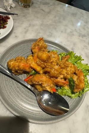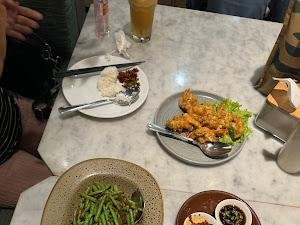 Gue juga nyobain salted egg prawn yang bener-bener juara, prawn-nya juicy dan salted egg-nya enak banget, dapet nilai 9.5/10 dari gue! Ada juga ebi beans yang menurut gue agak terlalu manis, tapi overall, makanan di sini tuh mantap. Banyak yang bilang, rasa bintang 5 dan the best squid in town, jadi loe pasti nggak bakal kecewa deh.
