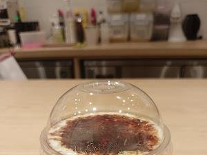 | Milky Coffee Pop, Strawberry Punch, Royal Soda with Konjac Jelly | Gelas milky coffee pop ada lubang sedikit jadi susu tumpah keluar |