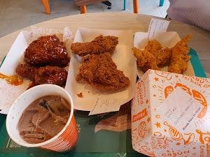 | Poppin 5 Wings Hot Sauce, 8 Chicken Popcorn Garlic Parmesan, 5pc Signature Crispy Chicken | anak2 suka, cuma kurang crispy aja |