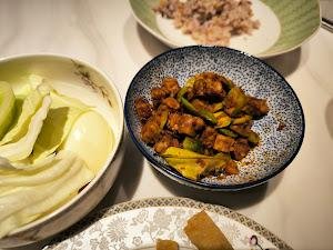 | Nasi Campur (Nasi Putih, Opor Ayam, Sambal Goreng Ampela, Daging Bumbu Rujak, Telor Petis, Sambal, Labu Siam) | Porsi lauknya kurang banyak, kesedikitan |