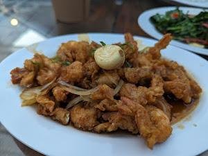 | Cumi Goreng Telur Asin, Sambal Mangga | dori saus mentega, sausnya terlalu berminyak |