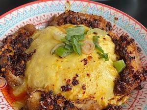 | Pisang Goreng Wijen Khas Romi, Egg Chiffon on Rice, Pempek Kapal Selam, Pangsit Goreng Daging Ayam | terlalu bnyk minyak utk nasi sei sapi nya |