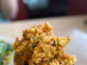 Menu andalan seperti bakwan jagung yang renyah, bunga papaya, dan sirip pari adalah keharusan untuk dicoba. Bakwan jagungnya, yang besar dan crispy, adalah yang terbaik yang pernah saya rasakan. Setiap kali saya datang, saya tidak pernah kecewa. Suasana yang ramah keluarga dan harga yang terjangkau menjadikan restoran ini pilihan tepat untuk berkumpul bersama orang-orang terkasih.